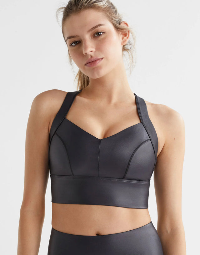 Shadow High-Shine Sports Bra in Black - XS is backordered and will ship as soon as it is back in stock.