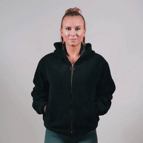 Soft, comfy and cosy! Wrap yourself in this BARA super-soft black teddy jacket made of the cutest teddy material. It features a loose fit which allows you to get really cosy. Wear it as a comfy and fashionable jacket or as a fleece jacket for colder days.