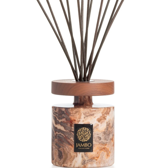 Meticulously crafted using premium-grade materials to marry elegance with functionality, these diffusers feature sleek designs, adorned with high-quality glass & sustainably sourced wood or ceramic accents, exuding sophistication in every detail. Each diffuser boasts a unique blend of scents meticulously curated to captivate and invigorate, offering a luxurious and long-lasting aromatic experience. Infused with quality and elegance, our diffusers are not just a décor piece but a statement of refined taste and unparalleled craftsmanship. Indulge in the art of scent with Jambo Collections.