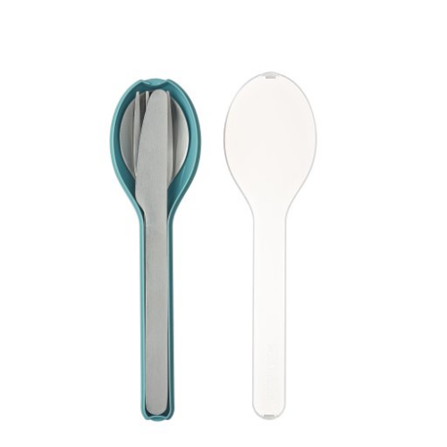 3- piece cutlery set in Nordic green. This stylish and practical cutlery set from Mepal consists of a knife, a fork and a spoon and is held together by a plastic holder. Ideal for travelling! The cutlery is made of stainless steel and may be cleaned in the dishwasher.