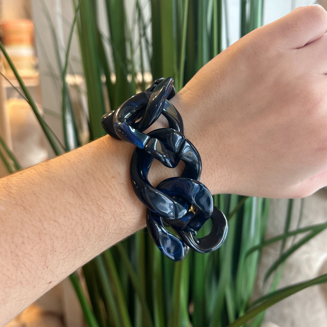 Upgrade your wrist game with our Navy Curb Chain Bracelet. This chunky, navy blue chain is sure to make a bold statement and add a touch of sophistication to any outfit. Perfect for both casual and formal occasions.