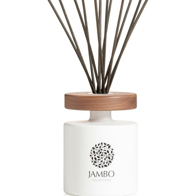 Meticulously crafted using premium-grade materials to marry elegance with functionality, these diffusers feature sleek designs, adorned with high-quality glass & sustainably sourced wood or ceramic accents, exuding sophistication in every detail. Each diffuser boasts a unique blend of scents meticulously curated to captivate and invigorate, offering a luxurious and long-lasting aromatic experience. Infused with quality and elegance, our diffusers are not just a décor piece but a statement of refined taste and unparalleled craftsmanship. Indulge in the art of scent with Jambo Collections.